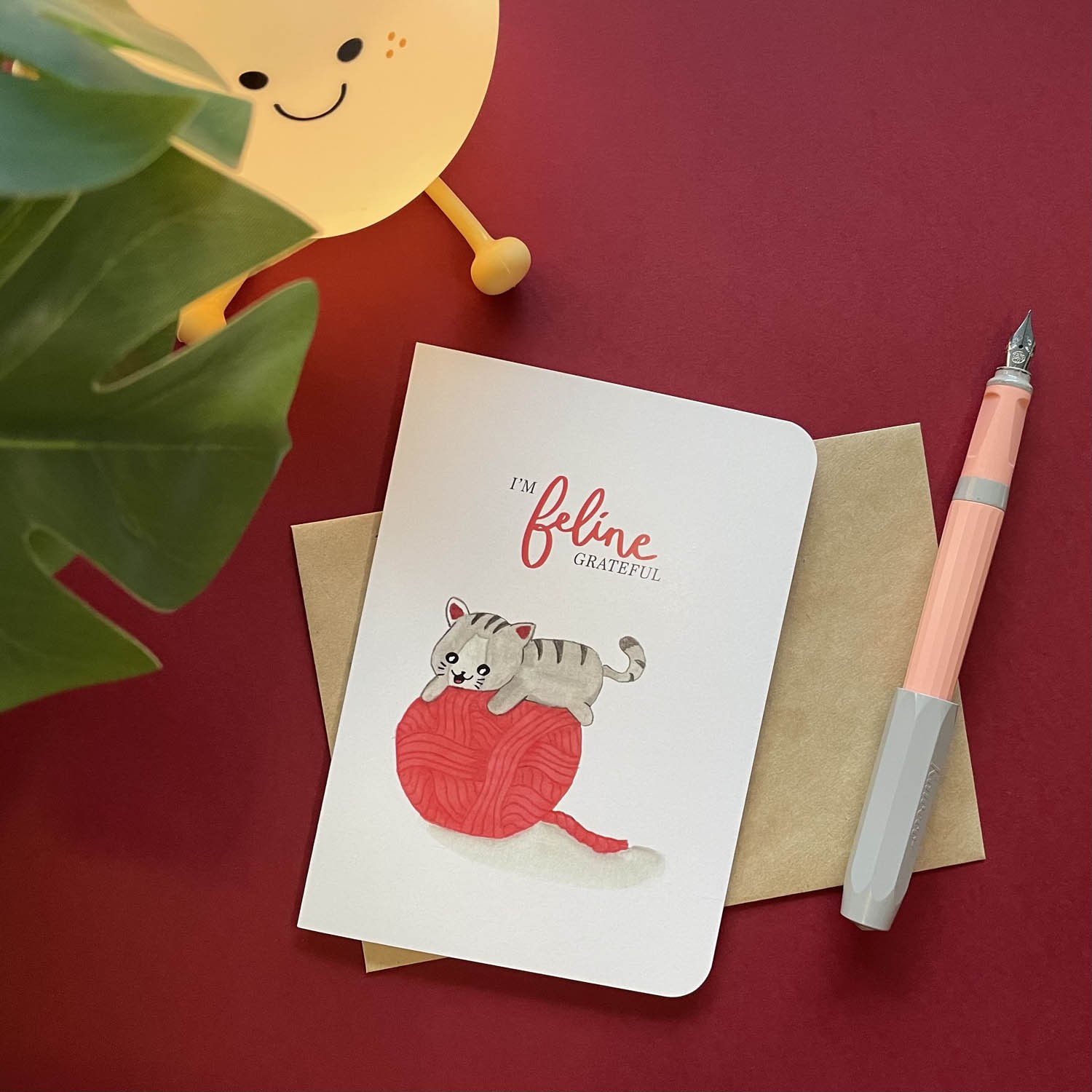 I’m "Feline" Grateful! 🐾 Cute Cat & Yarn Thank You Card