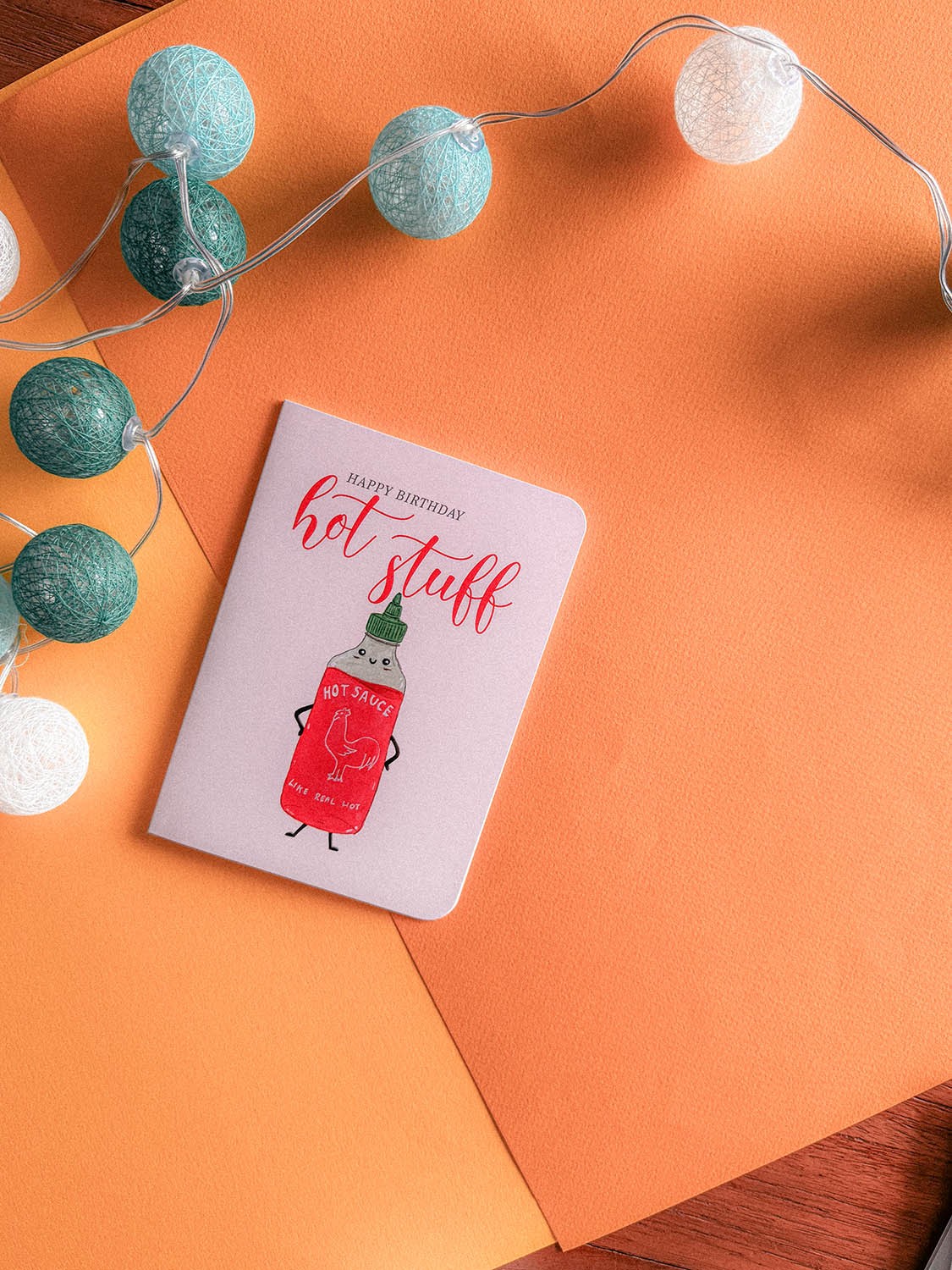 Looking for a birthday card with a fiery personality? Our hilarious "Happy Birthday, Hot Stuff!" card is the perfect way to celebrate that sizzling friend, partner, or family member! This fun design features an adorable, yet undeniably cool, hot sauce bottle character, complete with a cheeky expression and tiny arms and legs, declaring itself "LIKE REAL HOT."