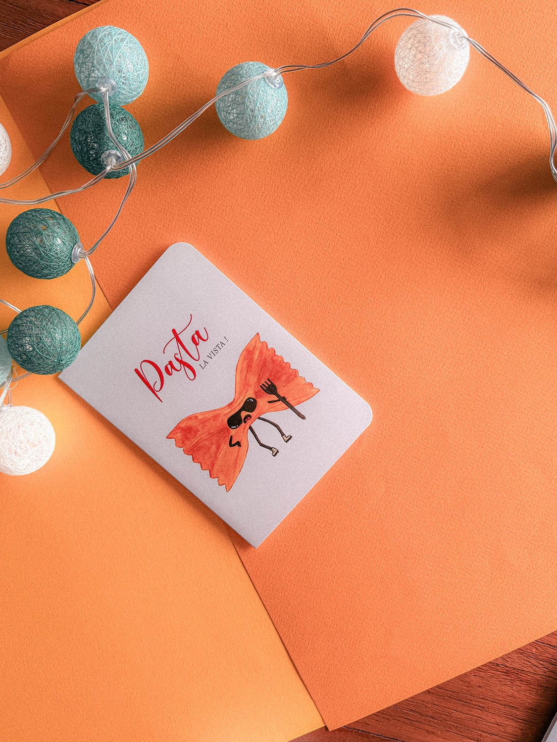 Our hand-illustrated pasta character is full of personality, making this card a joyful way to send off someone special. Ideal for those who love a good food pun and appreciate a lighthearted goodbye. Add a dash of humor to their departure! Order your "Pasta La Vista" card today!